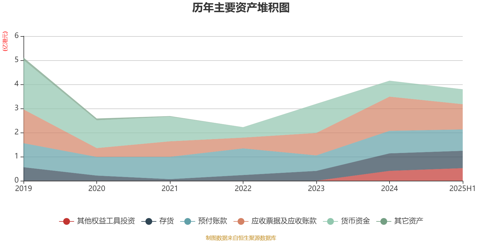 财富首要变化方面,律例2025年上半年,公司应收单据及应收账款较上期末减少26.15%,占公司总财富比重下落6.56个百分点;其他权利用具投资较上期末加多27.77%,占公司总财富比重上涨3.92个百分点;存货较上期末减少0.62%,占公司总财富比重上涨1.53个百分点;预支账款较上期末减少5.25%,占公司总财富比重上涨0.83个百分点。
