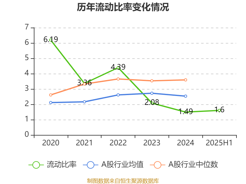 2025年上半年,公司流动比率为1.60,速动比率为1.25。