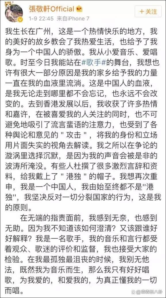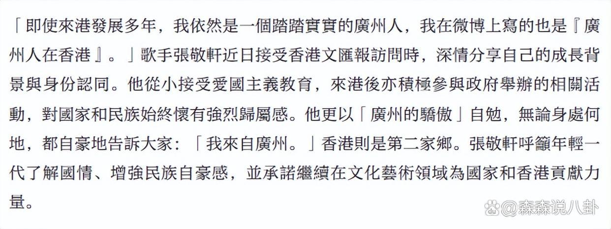 据悉,45岁的张敬轩是广州东谈主,2002年到香港发展,他在2012年到2015年时间,屡次发表不当言论,2017年复返内地干涉《我是歌手》,因被按捺而退赛,那时官媒径直点名月旦,张敬轩则透过微博否定我方是港独,但网友并不买账。