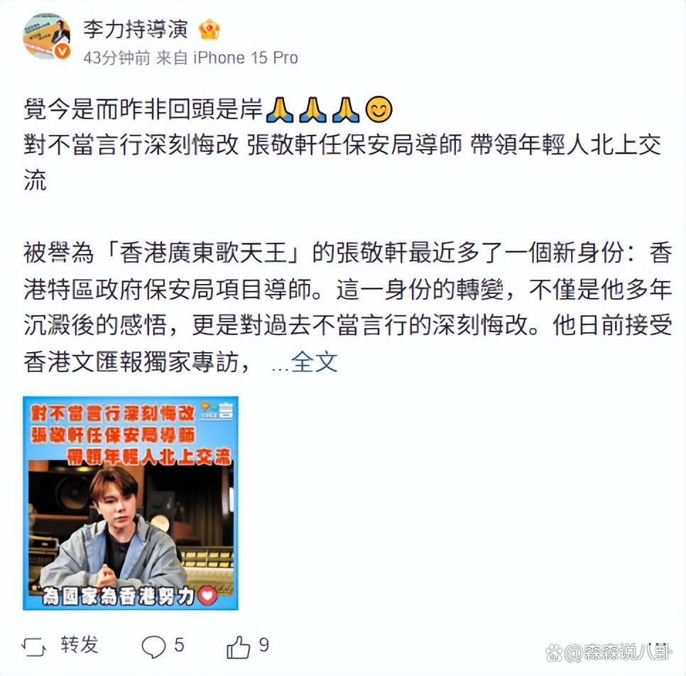 对此,导演李力握转发,坦言回头是岸。