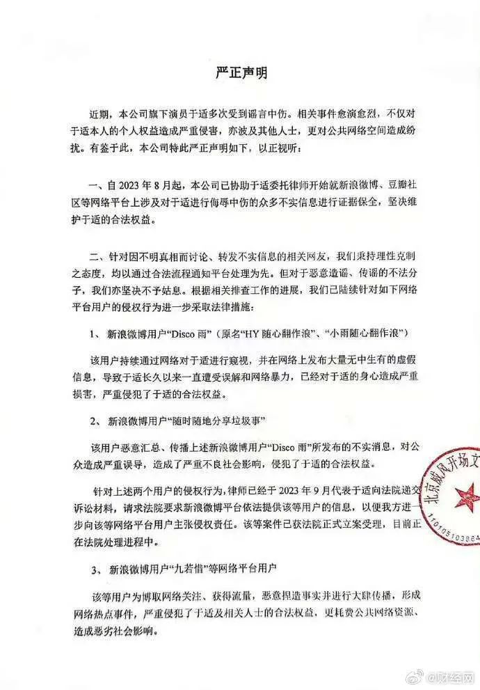 此前于适经纪公司曾发文,称Disco雨“合手续通过网络对于适进行窥视,并在网络上发布多半望风捕影的差错信息,导致于适永久以来一直遭逢扭曲和网络暴力,照旧对于适的身心变成严重毁伤”。