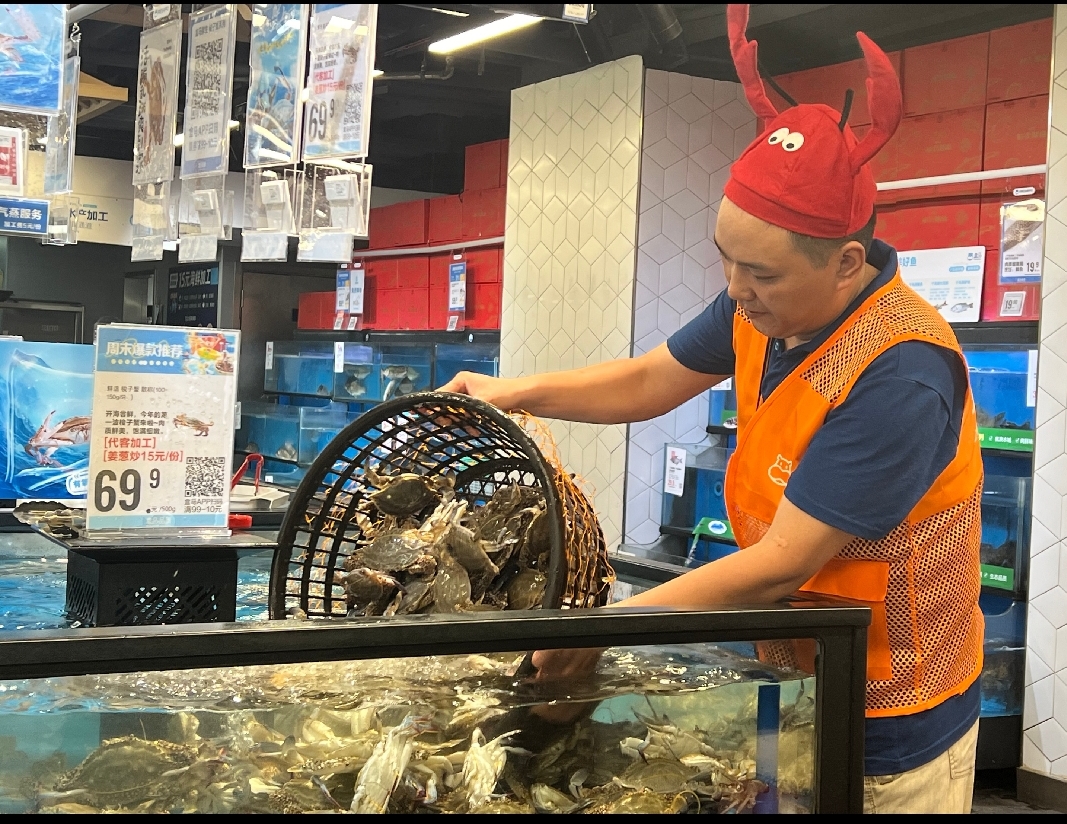 图:东海开海,第一批梭子蟹已到达盒马门店。